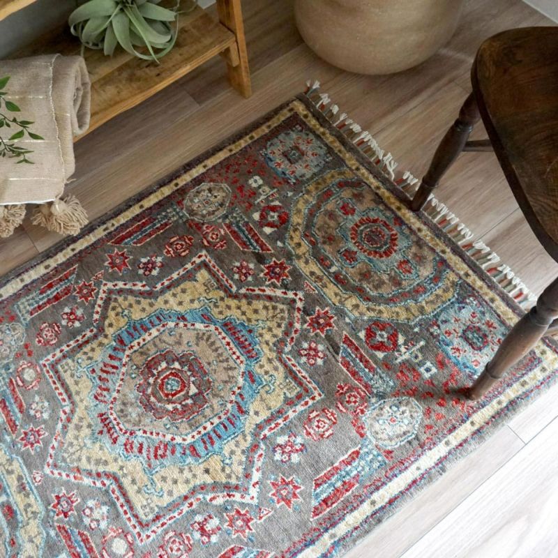 パキスタン緞通画像ポイント敷きとして使いやすいサイズ感。ソファや棚の前、ベッドサイドにおすすめです。