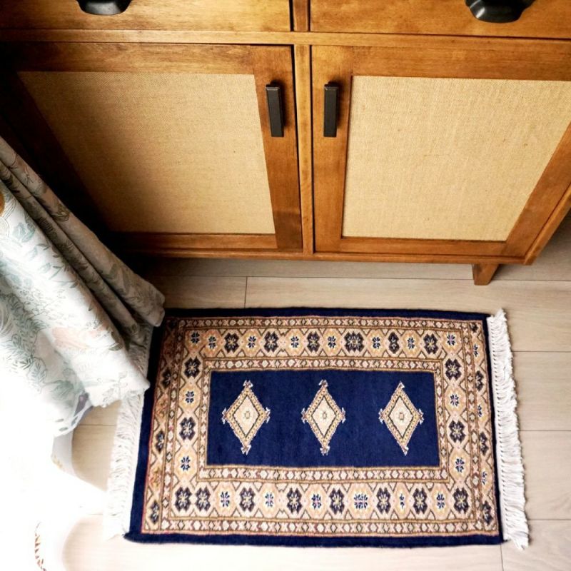 5. 【緞通】世界に1つだけ!高級手織りパキスタン緞通マットサイズ<ミッドハット ネイビー>:約69x47cm