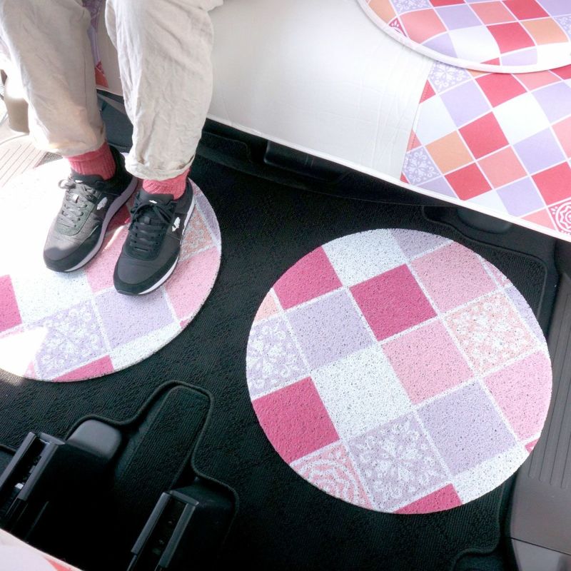 ★80%OFFSALE★激安!車のアクセントに!おしゃれなモロッカンデザインカーマット(フロアマット)(汎用) 後部座席用・円型マット <エスプリ ピンク>