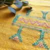 伝統的なハンドメイド刺繍が施された、温かみのあるカラフルなデザインが魅力です。