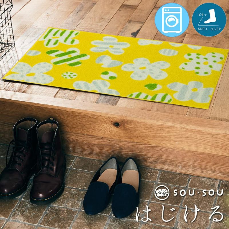 【SOU・SOU】ウォッシャブル!ポップなテキスタイルデザインが楽しめるインテリアマット<はじける>:45×75cm
