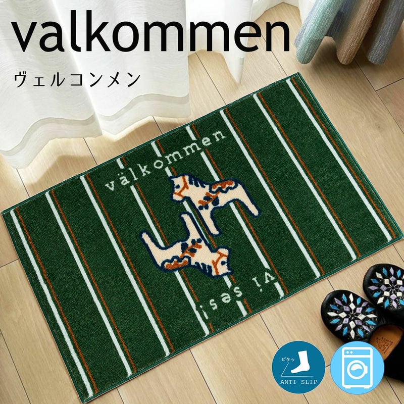 スウェーデン語の「valkommen(ようこそ)」とスウェーデンの伝統工芸「ダーラナホース」をモチーフにしたデザインマット