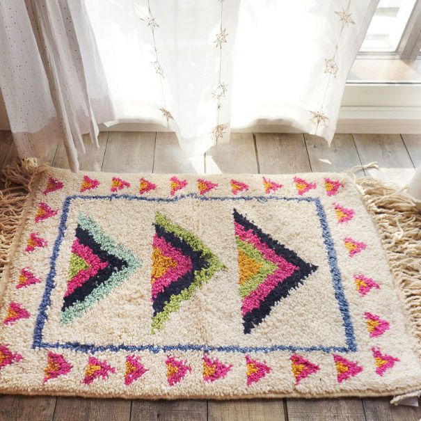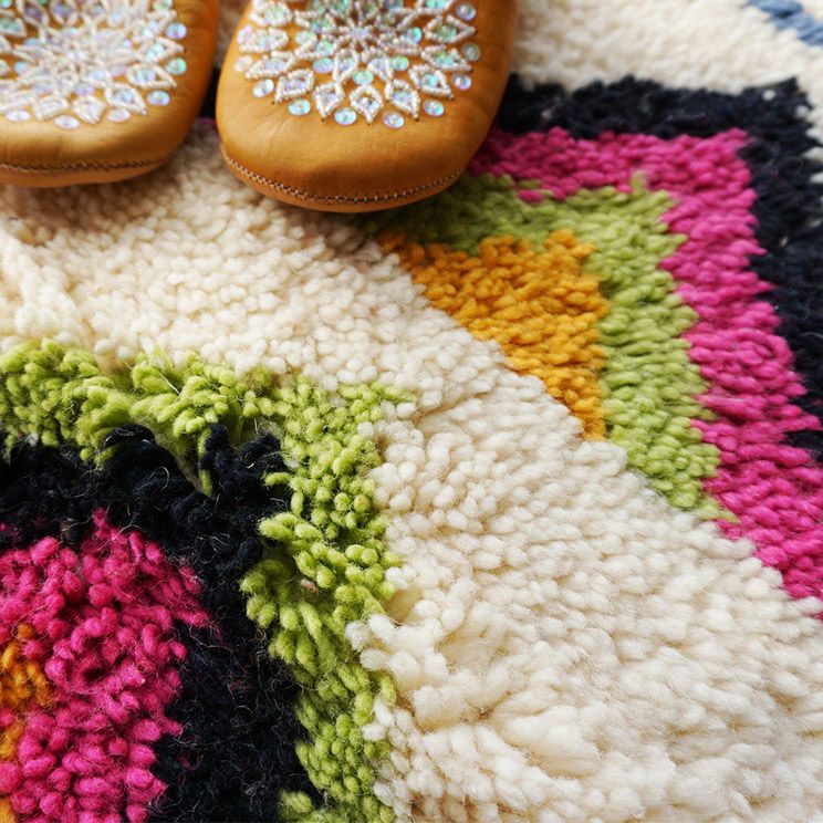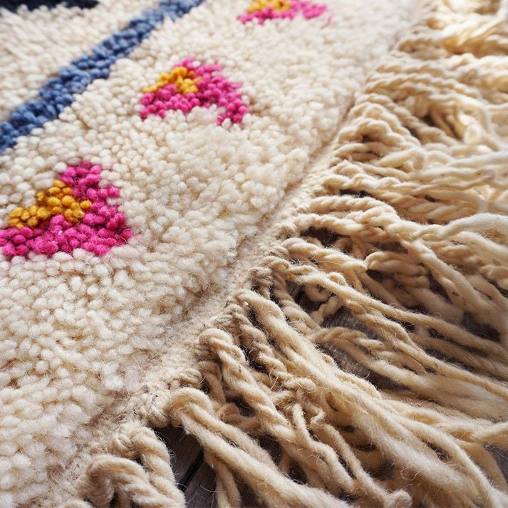 アトラス山脈に生息するモロッコの羊の毛をふんだんに使ったもこもこの手織りラグです。