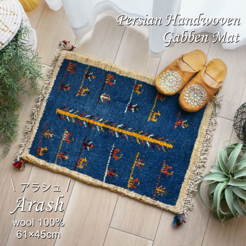 本場ペルシャよりハンドメイドギャベ・マット 世界に1枚しかない本場の逸品!【ラグモア オリジナル】<Arash アラシュ - LB-1977>:61x45cm
