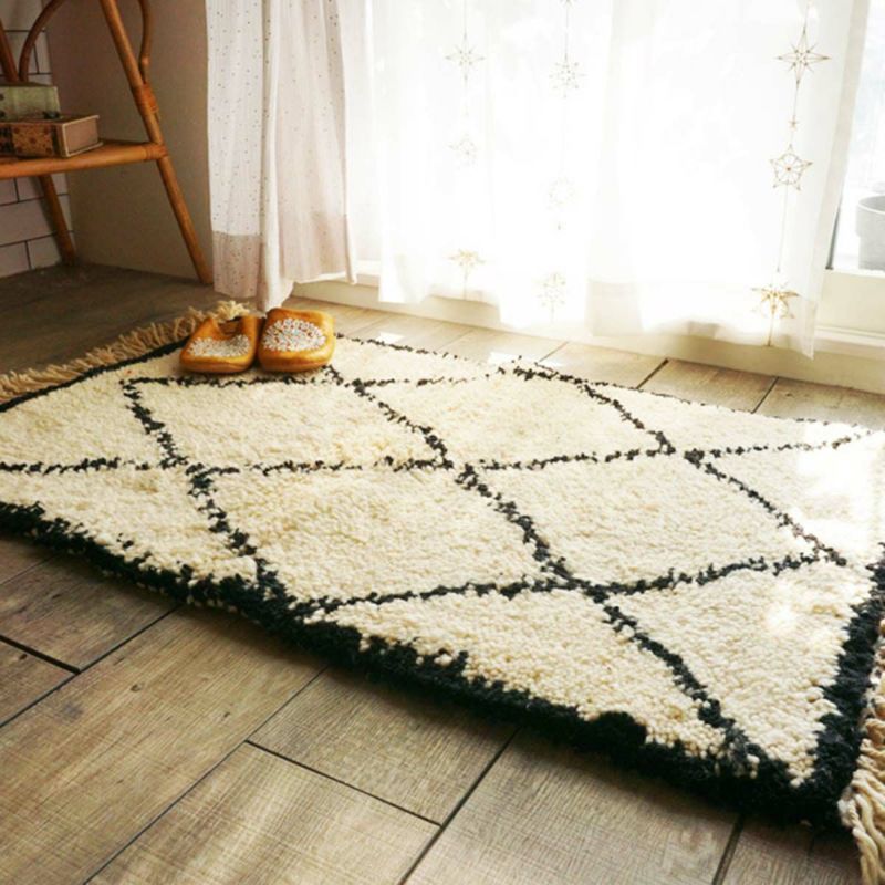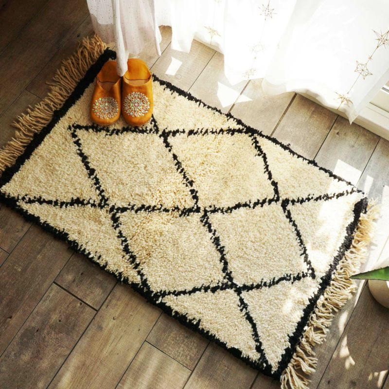 アトラス山脈に生息するモロッコの羊の毛をふんだんに使ったもこもこの手織りラグです。