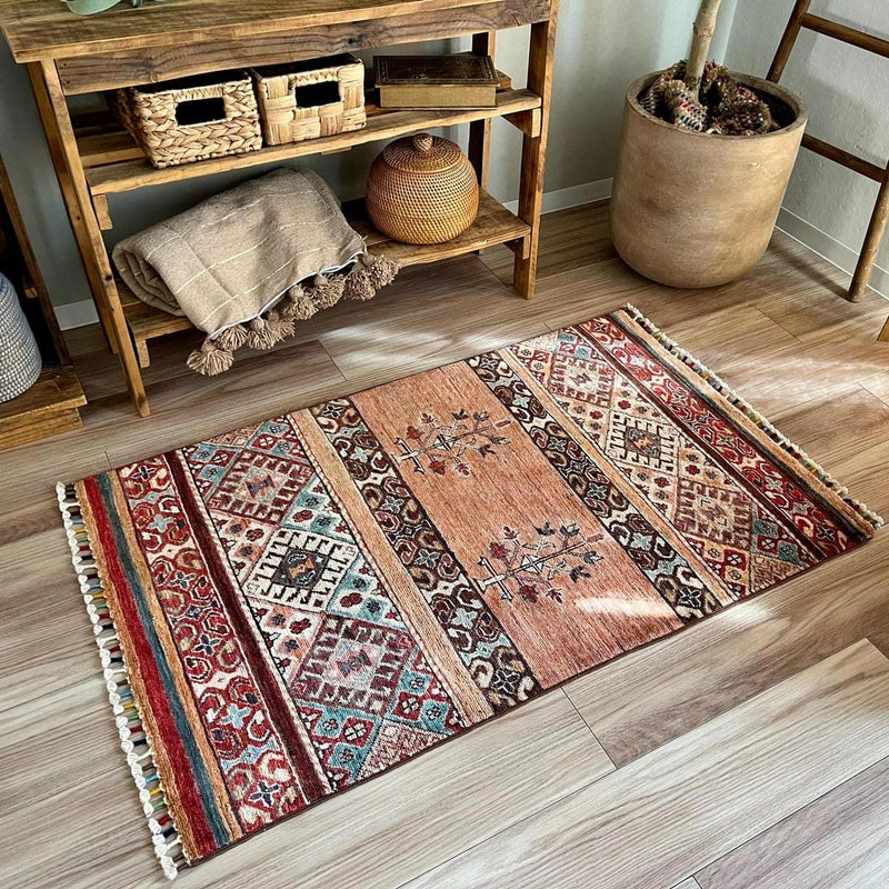パキスタン緞通画像 ポイント敷きとして使いやすいサイズ感。ソファや棚の前、ベッドサイドにおすすめです。