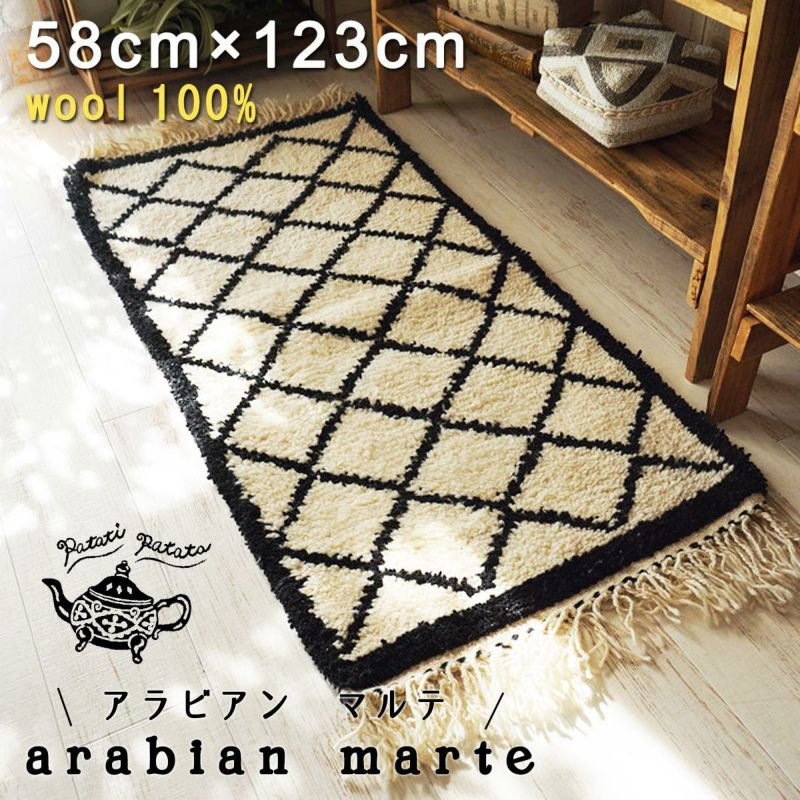 5. 世界に1枚だけ!モロッコ直輸入のウール100%ハンドメイドベニワレンラグ!patati-patata・本物のベニワレン<NO77 アラビアン マルテ>58×123cm
