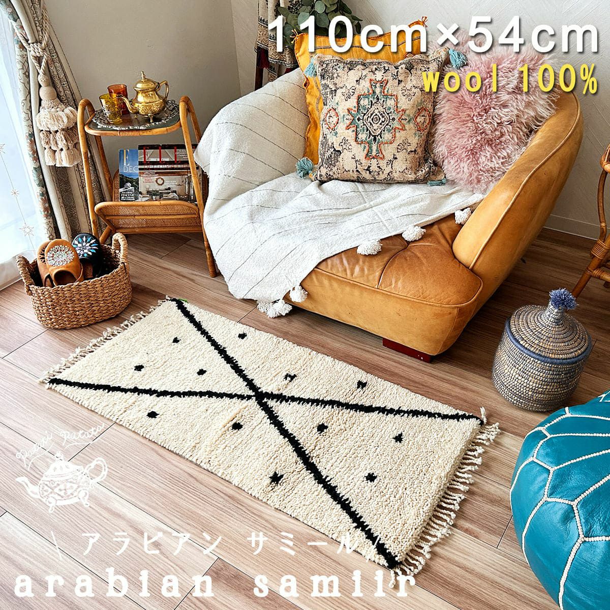 他の画像を見る オリジナル 世界に1枚だけ!モロッコ直輸入のウール100%ハンドメイドベニワレンラグ!patati-patata・本物のベニワレン<NO71 アラビアン ザザート>55×110cm 販売価格 ¥ 43,230 税込 モロッコから直輸入!大人気のウール100%手織りベニワレン! ラグモアだからできるお買い得価格!! カートに入れる お気に入りに登録する