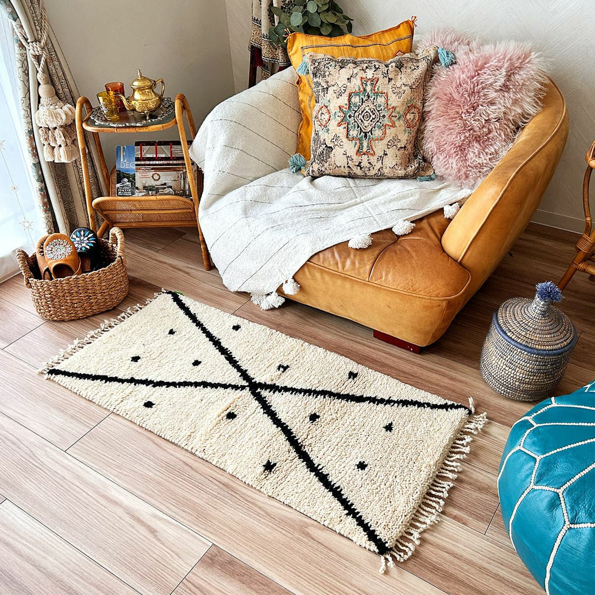 他の画像を見る オリジナル 世界に1枚だけ!モロッコ直輸入のウール100%ハンドメイドベニワレンラグ!patati-patata・本物のベニワレン<NO139 アラビアン フィリ>90X113cm 販売価格 ¥ 57,530 税込 モロッコから直輸入!大人気のウール100%手織りベニワレン! ラグモアだからできるお買い得価格!! カートに入れる お気に入りに登録する