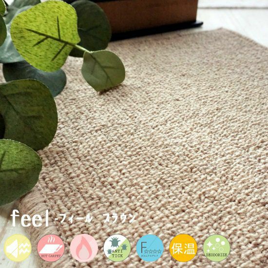 100サイズ選べるオーダーカーペット!防炎・防音・防ダニ・静電・抗菌機能が付いたリーズナブルなウールラグ <Feel - フィール ブラウン>