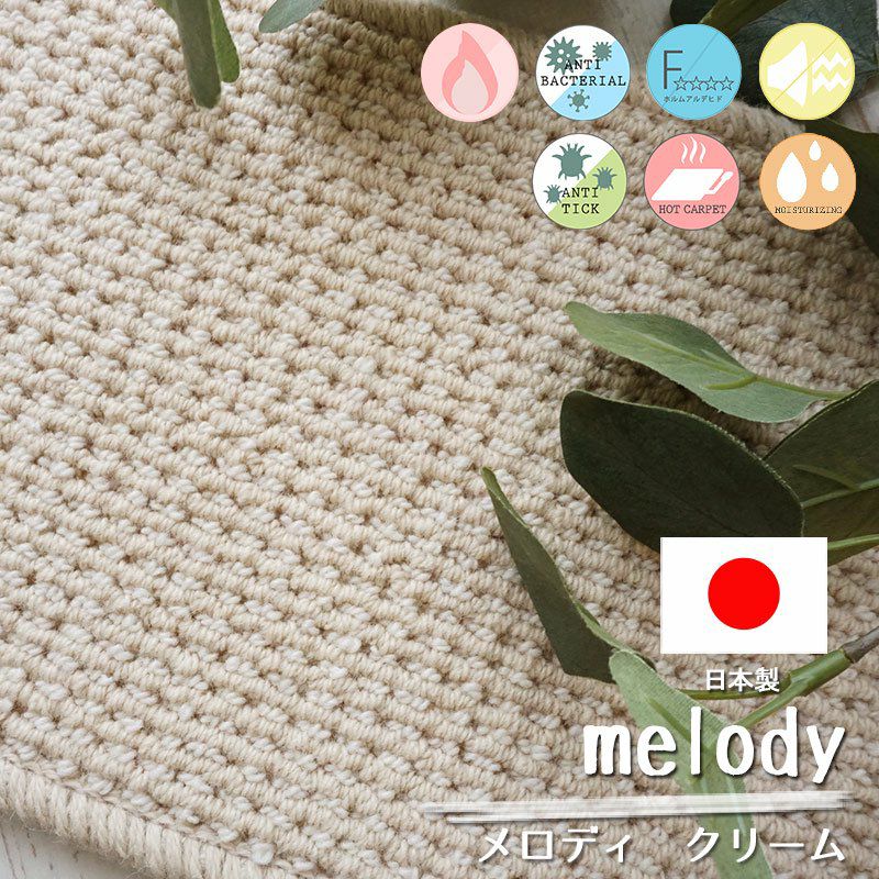 100サイズ選べるオーダーカーペット!2種類の特別なウールをブレンドしたソフトな踏み心地の高機能ウールラグ<melody - メロディ クリーム>