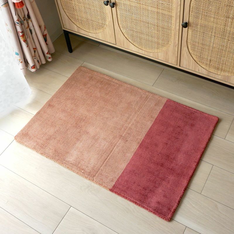 ★OUTLET・1点もの★インド産おしゃれなデザインのマット<ピンク×ベージュ>:1サイズ