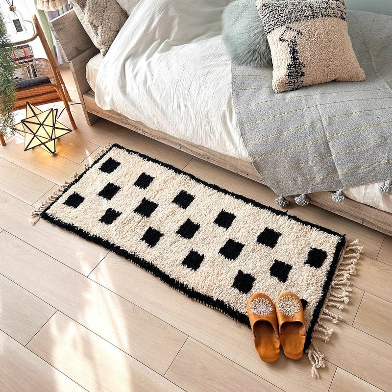 アトラス山脈に生息するモロッコの羊の毛をふんだんに使ったもこもこの手織りラグ・マットです。