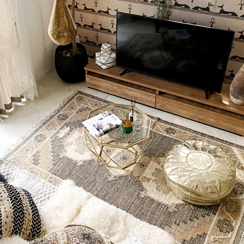 ジュートの素材感とエジプトの古代文明や神話の世界観を存分に楽しめるラグです。