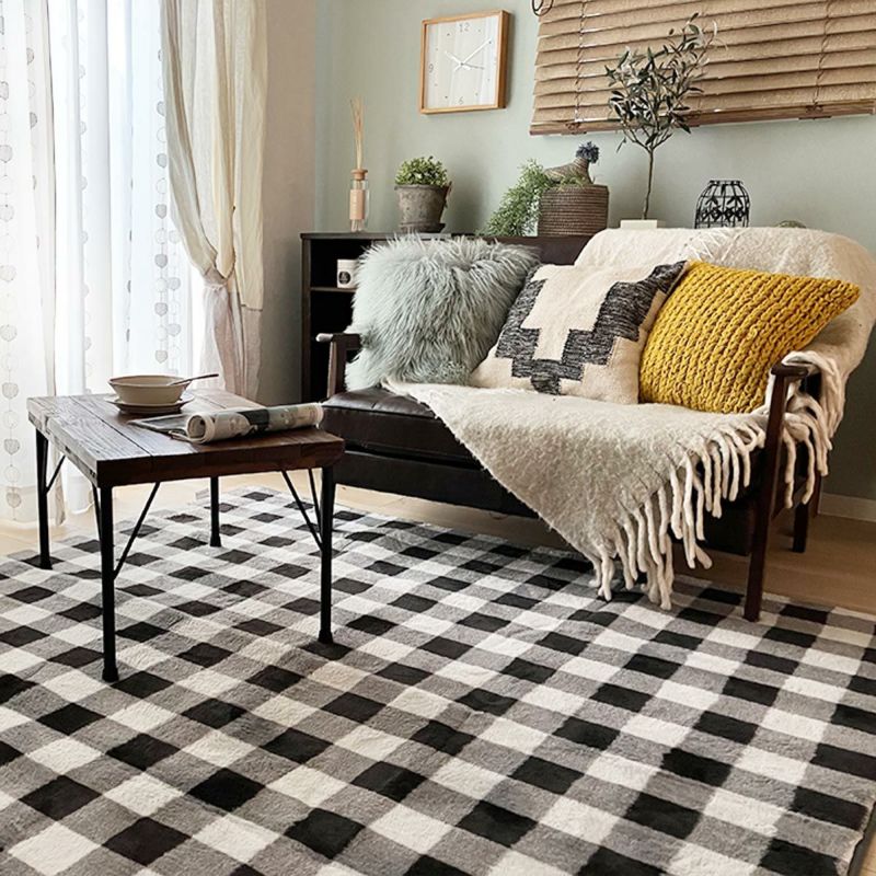 インテリアに映えるブロックチェック柄のラグ。優しい配色とソフトなタッチで心地よい肌触り。