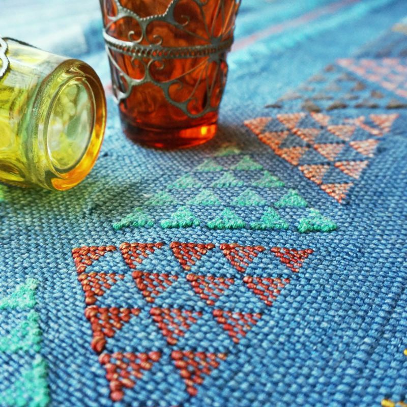 伝統的なハンドメイド刺繍が施された、温かみのあるカラフルなデザインが魅力です。