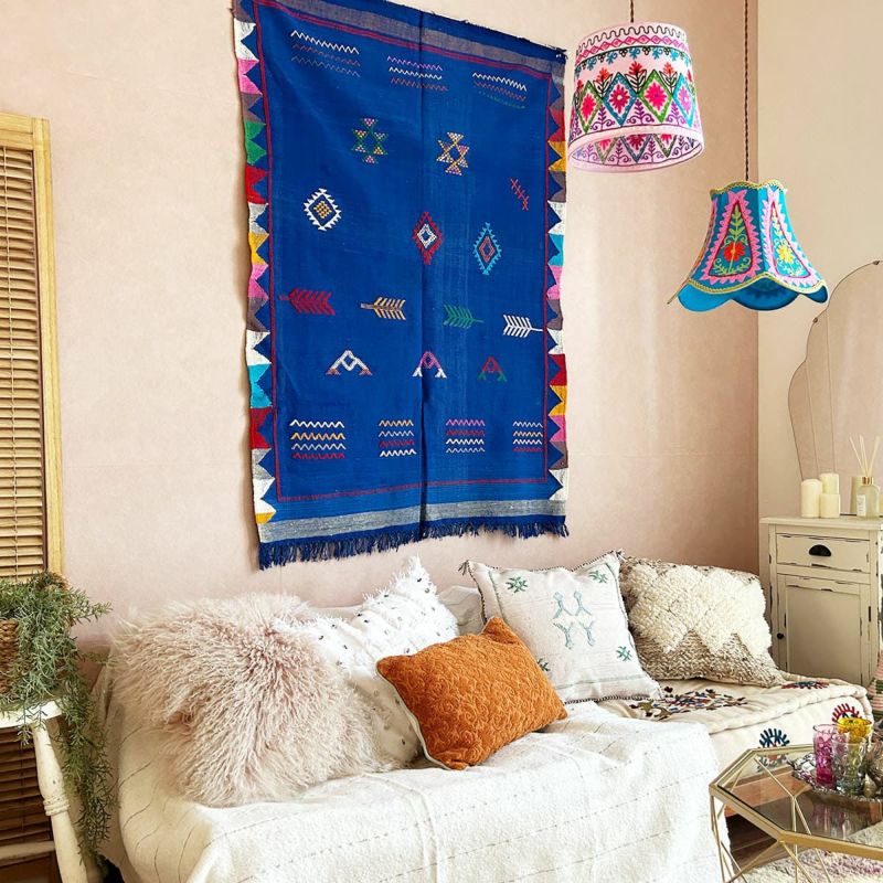 ラグとしてだけではなく、タペストリーとして壁面装飾として飾っても素敵です。
