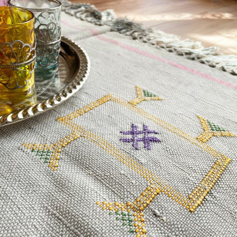 「サブラ」や「カクタスシルク」と呼ばれるサボテン科の植物繊維を使用して手織りした1点モノのラグ。