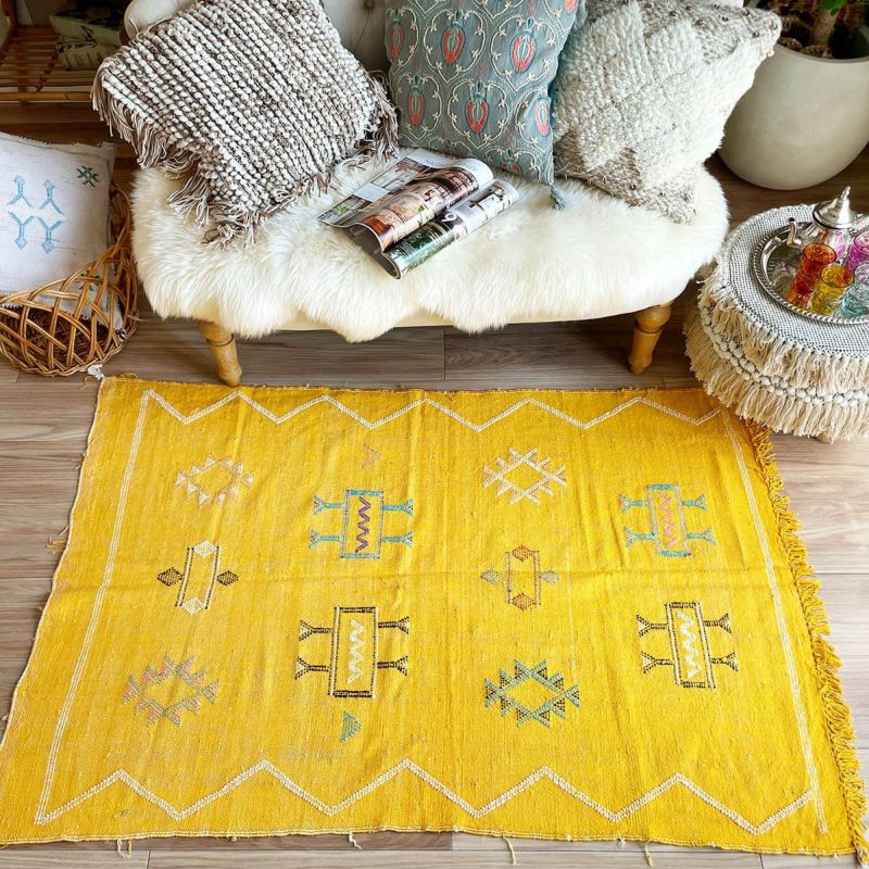 「サブラ」や「カクタスシルク」と呼ばれるサボテン科の植物繊維を使用して手織りした1点モノのラグ。