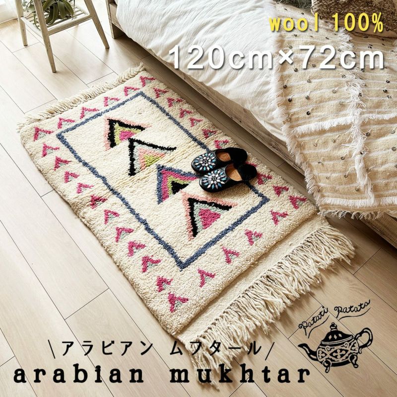 世界に1枚だけ!モロッコ直輸入のウール100%ハンドメイドベニワレンラグ!patati-patata・本物のベニワレン<NO622 アラビアン ムフタール>120×72cm