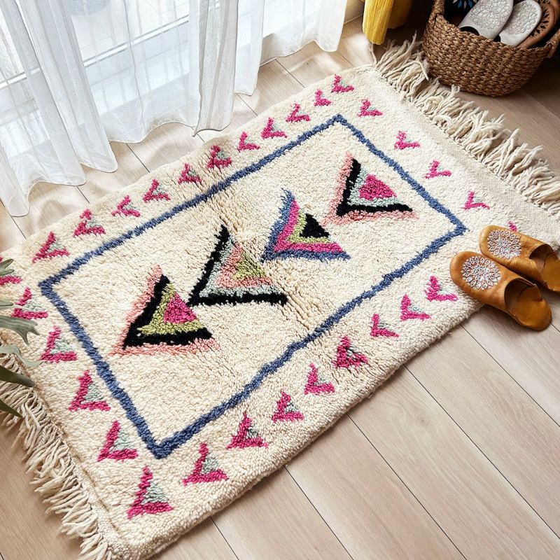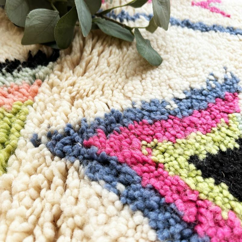 アトラス山脈に生息するモロッコの羊の毛をふんだんに使ったもこもこの手織りラグです。