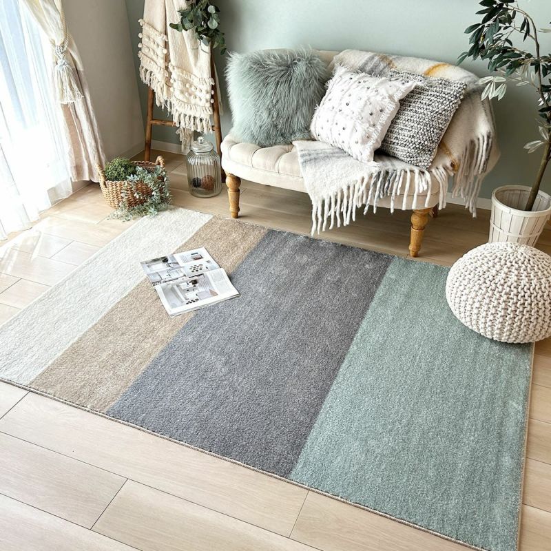 シンプルだけど大胆なカラーの切り替えが印象的なデザインラグ。