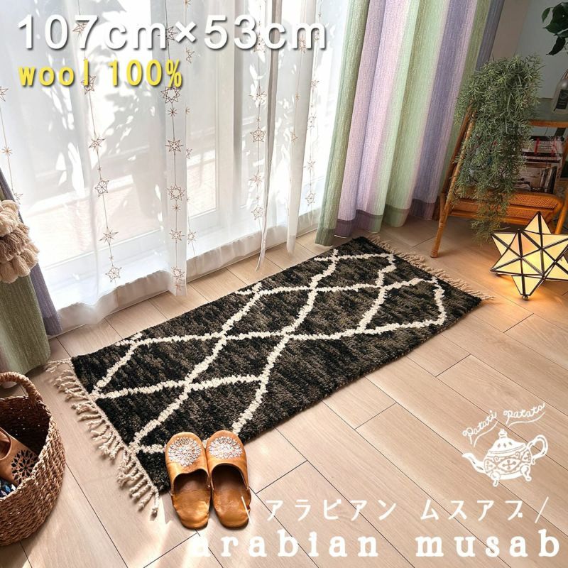世界に1枚だけ!モロッコ直輸入のウール100%ハンドメイドベニワレンラグ!patati-patata・本物のベニワレン<NO638-2 アラビアン ムスアブ>107×53cm