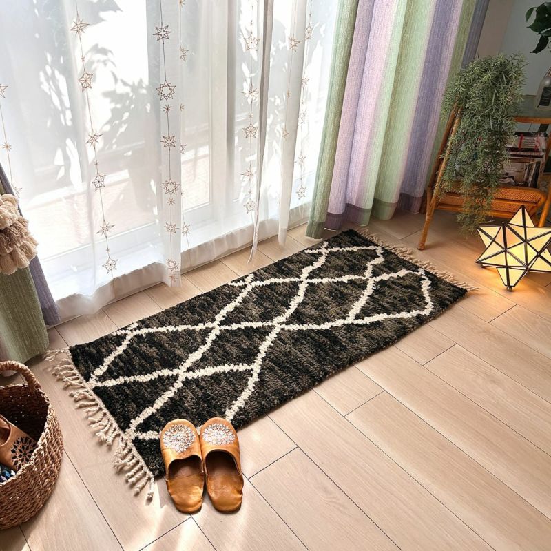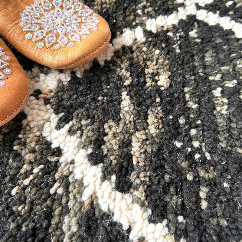 アトラス山脈に生息するモロッコの羊の毛をふんだんに使ったもこもこの手織りラグ・マットです。
