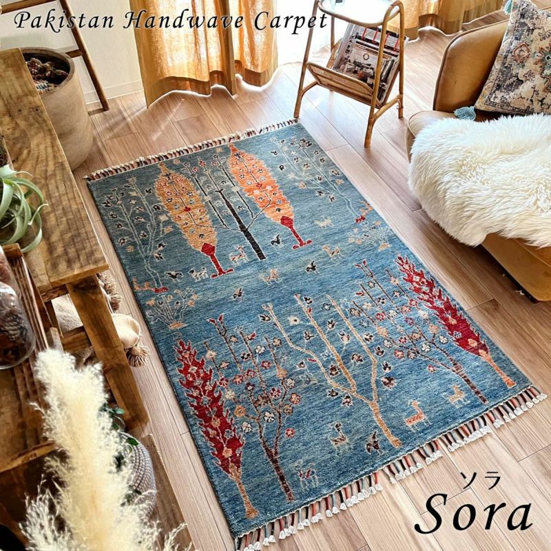 4. 世界に1つだけの手織りパキスタン緞通<PG19ソラ sora>:約164x102cm