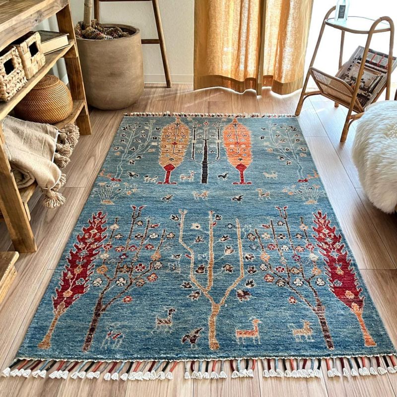パキスタン緞通画像 ポイント敷きとして使いやすいサイズ感。ソファ前やベッドサイドにおすすめです。