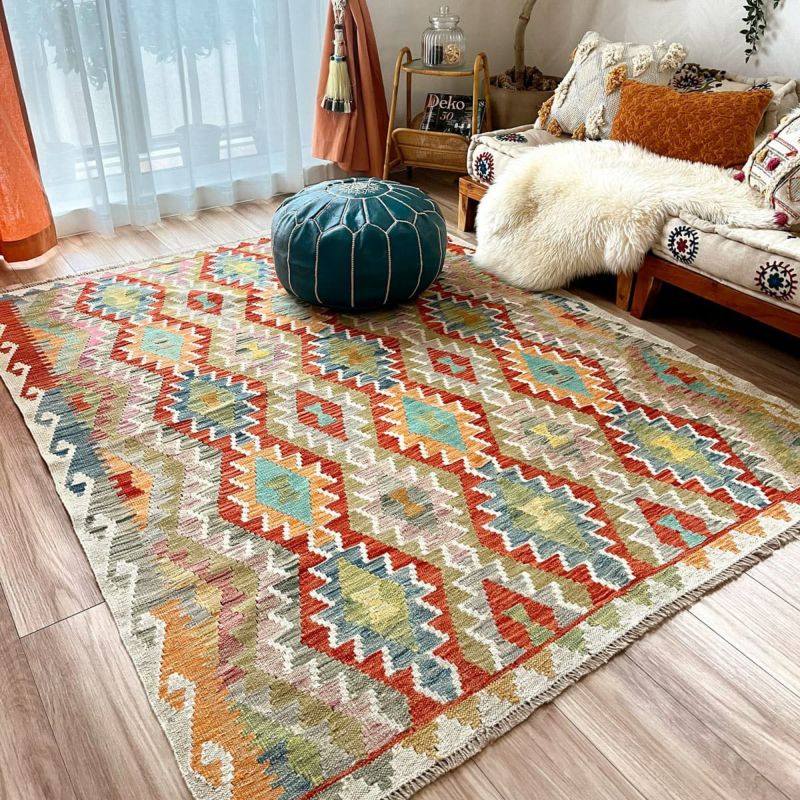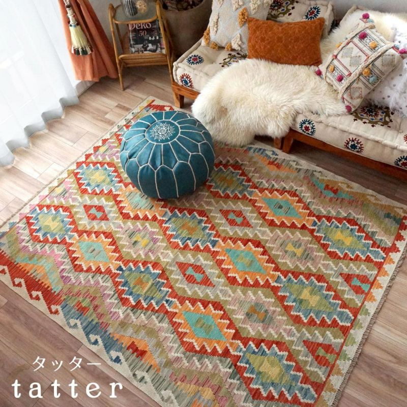 キリムは薄くて軽量なので、女性一人でも扱いやすいラグです。