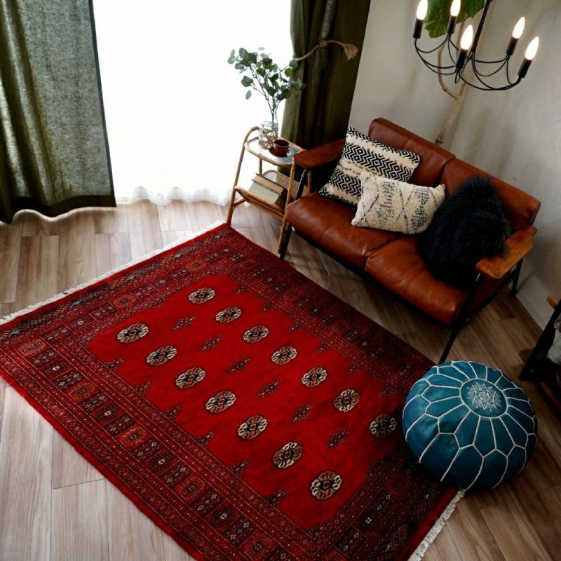 4. 【緞通】世界に1つだけ!高級手織りボハラ柄パキスタン緞通<バーキル レッド>:約194x141cm