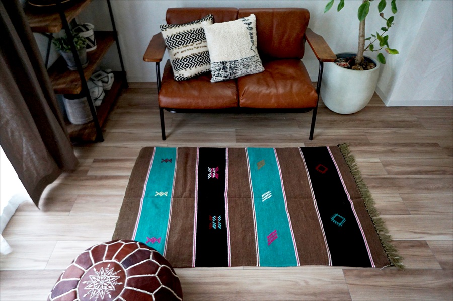 モロッコのベルベル民族が手織りで作ったラグなので、世界に1点だけの特別感があります。