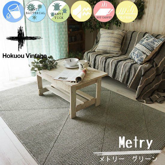 びっくりする程汚れが落ちる国産アクセントラグ PTT繊維防汚加工のパターン幾何学デザイン< Metry - メトリー グリーン ->:3サイズ