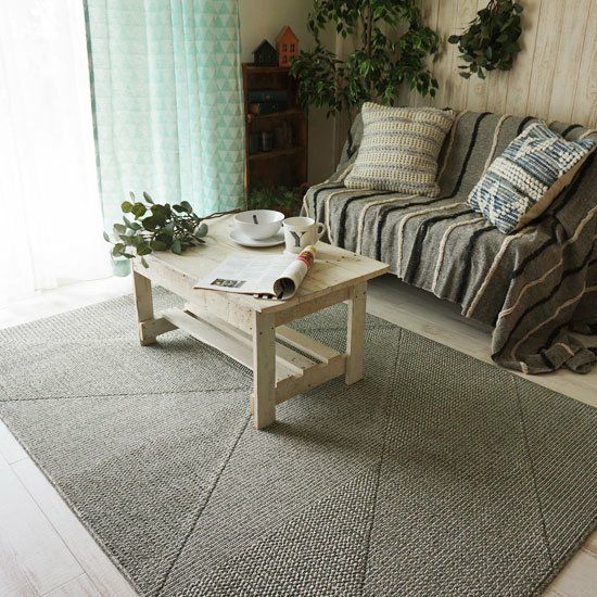 使いやすい幾何学デザインの防ダニ・抗菌ラグです。