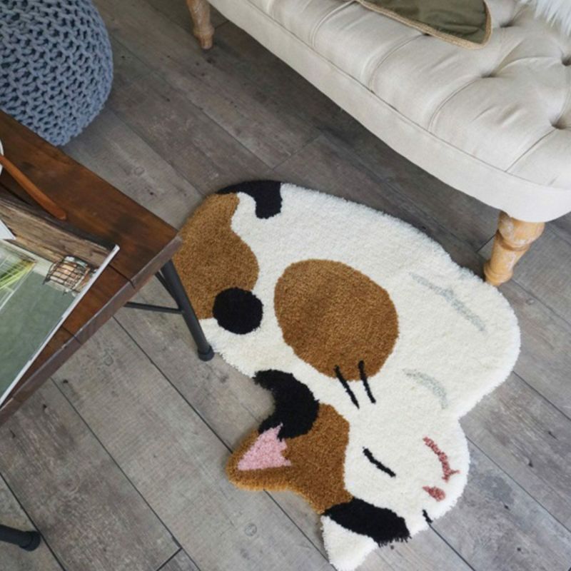 猫ちゃんのユニークな座り方をモチーフにしたアクセントラグ<Utataneko-ウタタネコ ミケ->:70x60cm