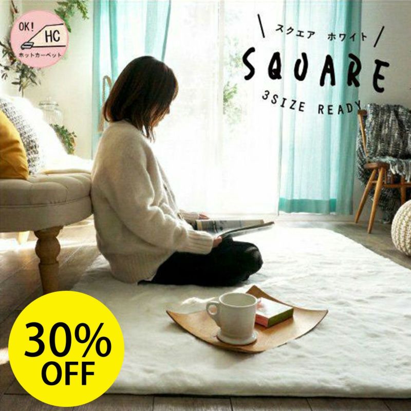 3. ★30%OFF★【ラグモアオリジナル】とろける肌触り、もふもふのエコファーラグ・床暖対応<モッフィー スクエア ホワイト>:3サイズ