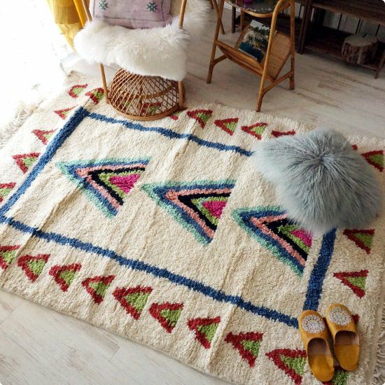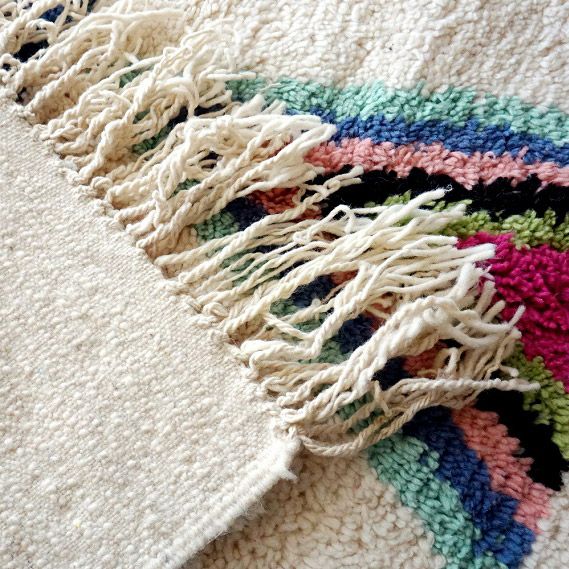 アトラス山脈に生息するモロッコの羊の毛をふんだんに使ったもこもこの手織りラグです。
