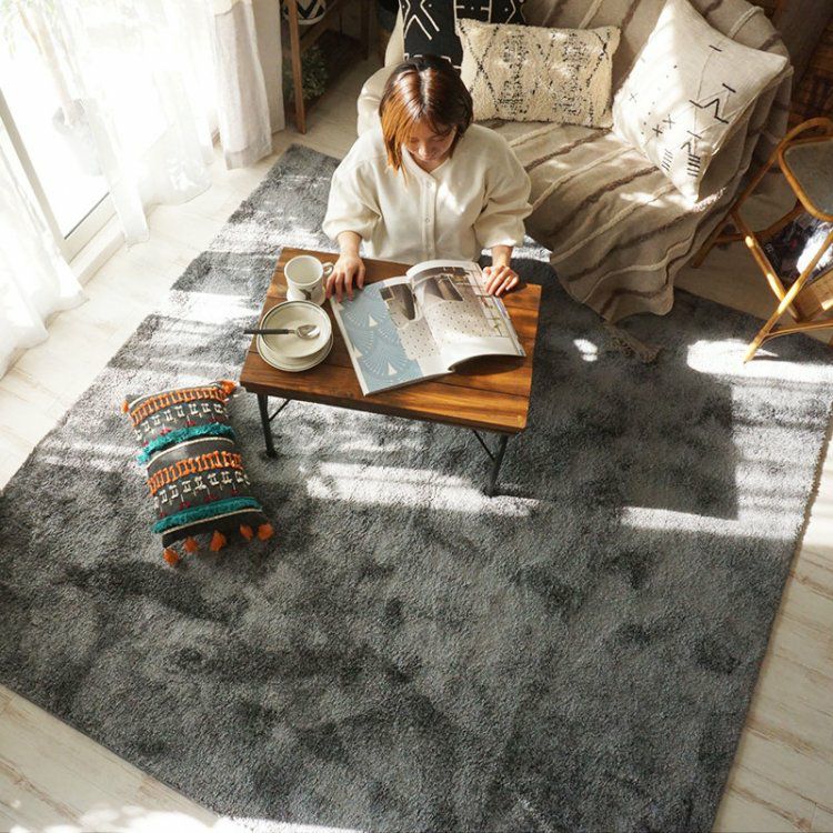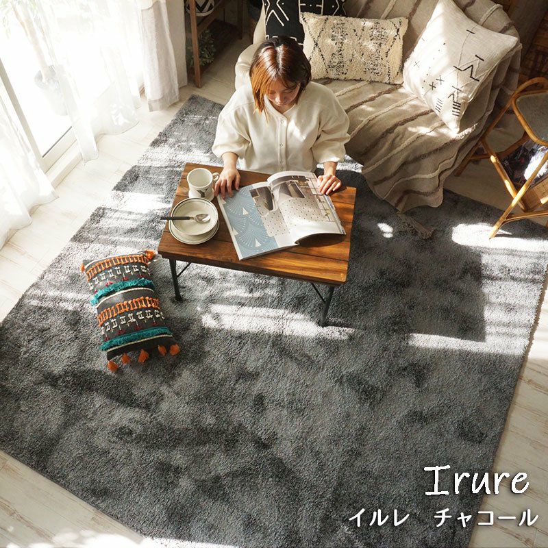 4. 防炎・アレルブロック・防ダニ 柔らかな肌触りで上品なカラーが美しいラグ<Irure - イルレ チャコール ->:7サイズ