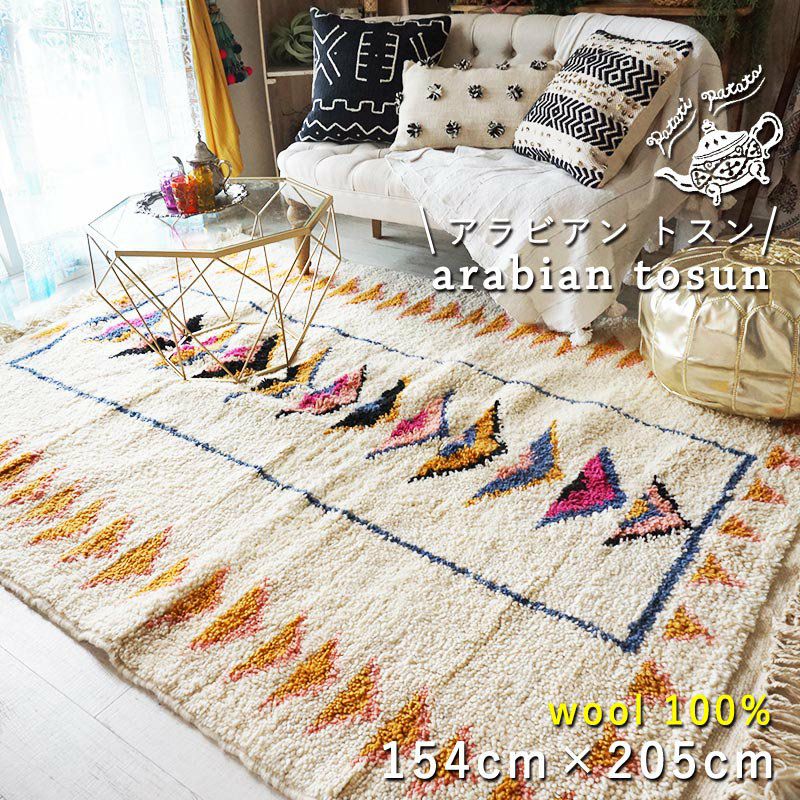 世界に1枚だけ!モロッコ直輸入のウール100%ハンドメイドベニワレンラグ!patati-patata・本物のベニワレン<NO565 アラビアントスン>:205×154cm