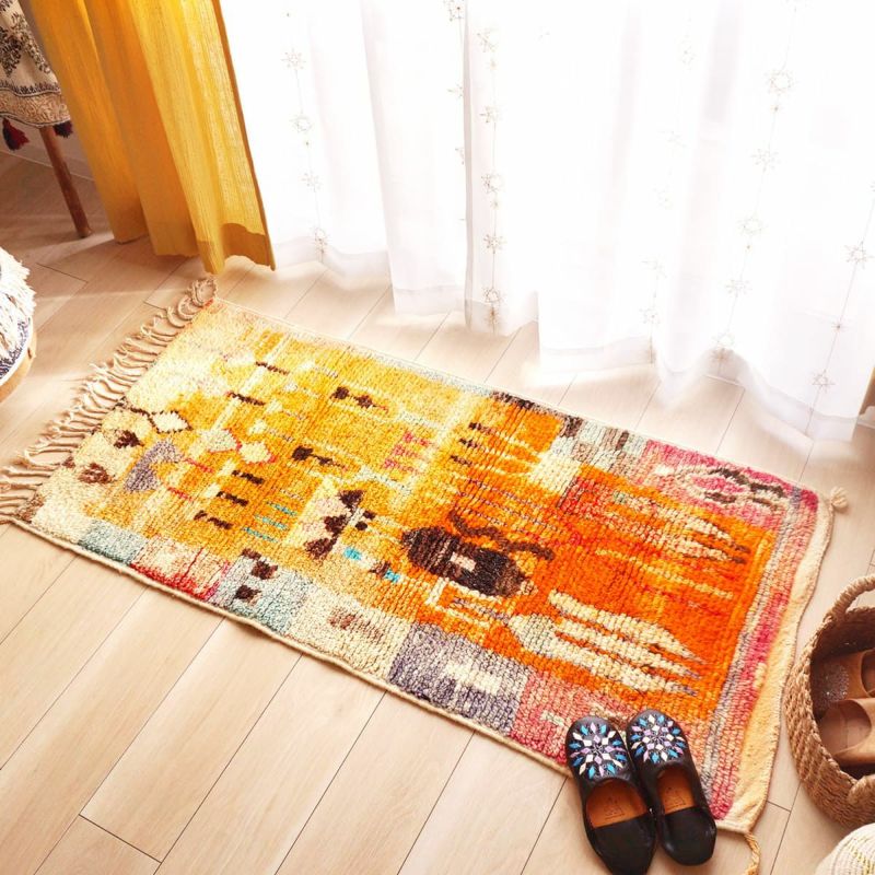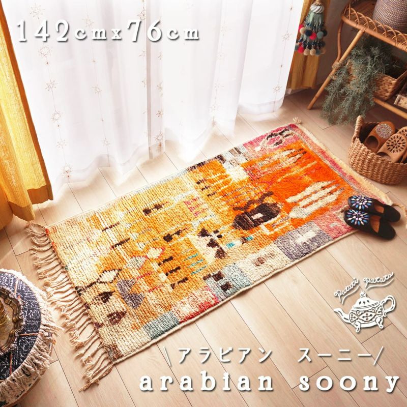 モロッコ発!世界に1枚だけのヴィンテージカーペット・ラグ『ボシャルウィット』 patati-patata<V5-1 アラビアンスーニー> 145x73cm:1