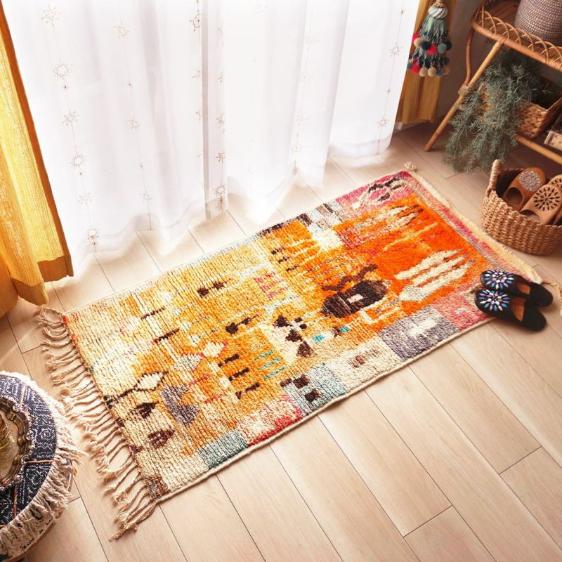 ベルベルカーペットの一種である『ボ・シャルウィット』はアトラス山脈からサハラ砂漠のエリアに住むベルベル民族の伝統的な手織りカーペットです。