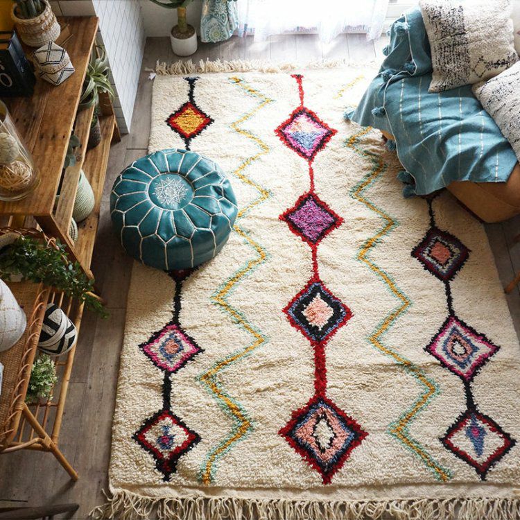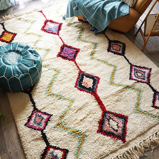 アトラス山脈に生息するモロッコの羊の毛をふんだんに使ったもこもこの手織りラグです。