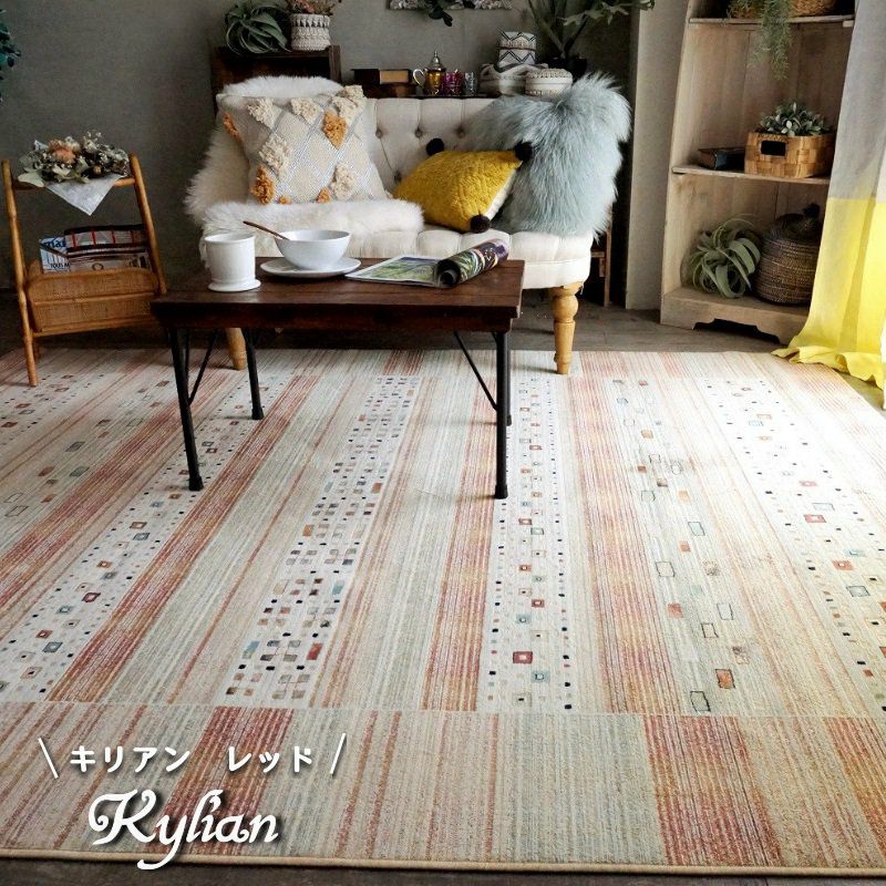 4. エスニックデザインがおしゃれなベルギー産モケット織ラグ<kylian キリアン レッド>:2サイズ