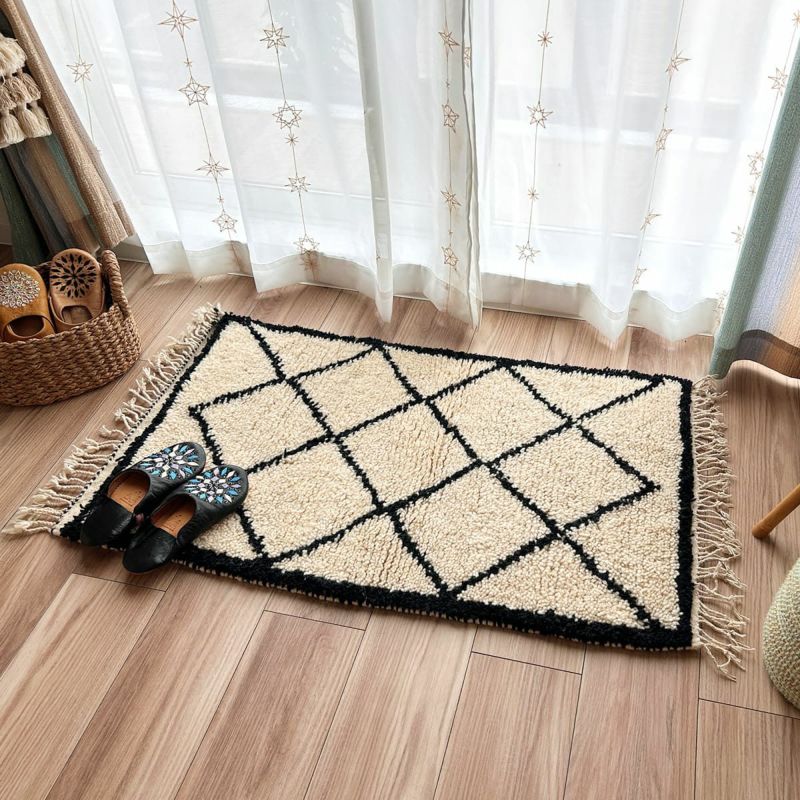 世界に1枚だけ!モロッコ直輸入のウール100%ハンドメイドベニワレンラグ!patati-patata・本物のベニワレン<NO303-1 アラビアン ゾーナー>103×61cm