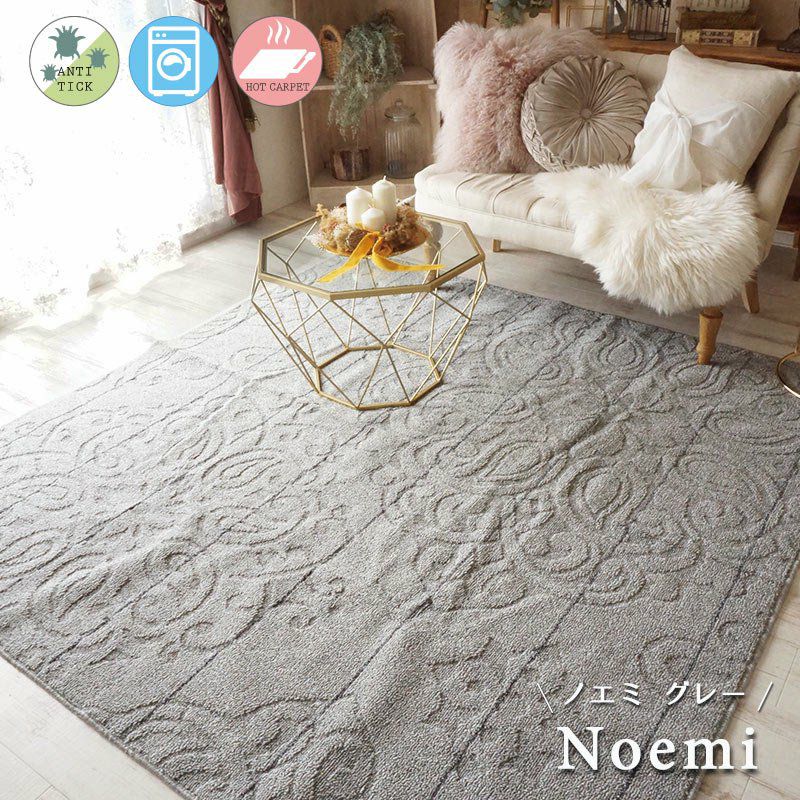 大人気!洗えるオールシーズンタイプ クラシカルデザインのアラベスク柄ラグ<Noemi - ノエミ グレー ->:3サイズ
