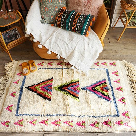 アトラス山脈に生息するモロッコの羊の毛をふんだんに使ったもこもこの手織りラグです。
