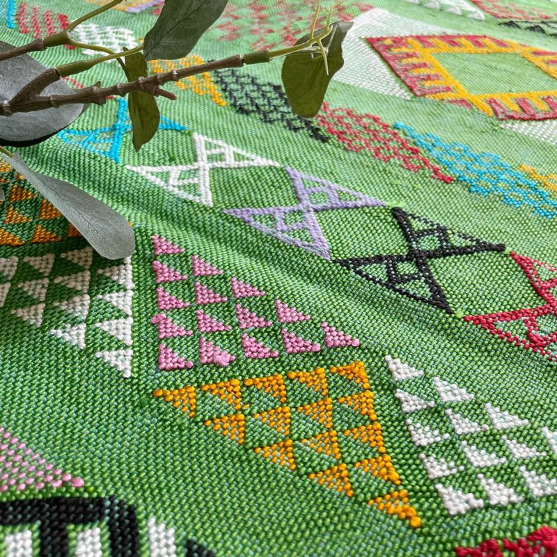 「サブラ」や「カクタスシルク」と呼ばれるサボテン科の植物繊維を使用して手織りした1点モノのラグ。