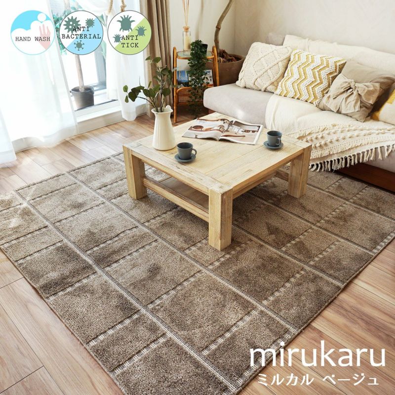 4. ソフトな手触りが心地よいモダンデザインの国産ラグ<Mirukaru ミルカル ベージュ>:3サイズ