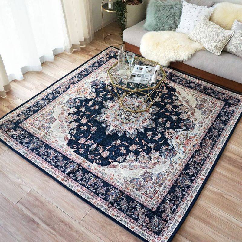 4. メダリオン柄の上品なゴブランシェニールラグ<Carina - カリーナ ネイビー ->:3サイズ